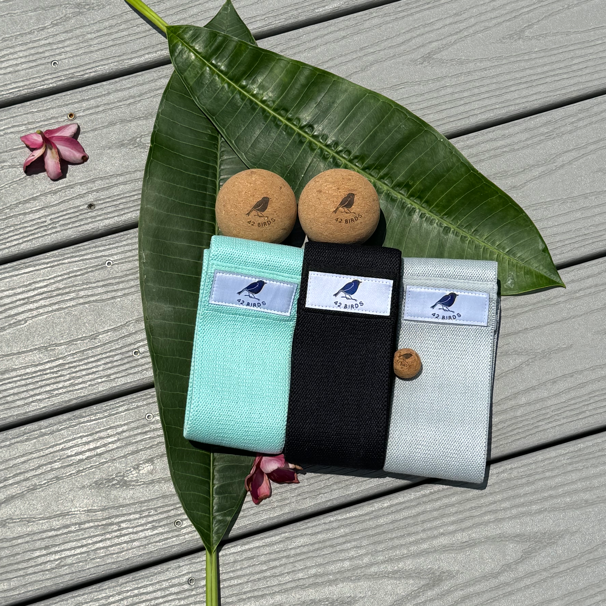 Strength + recovery tools: Includes cork massage balls and resistance bands for muscle activation, flexibility, and joint support.